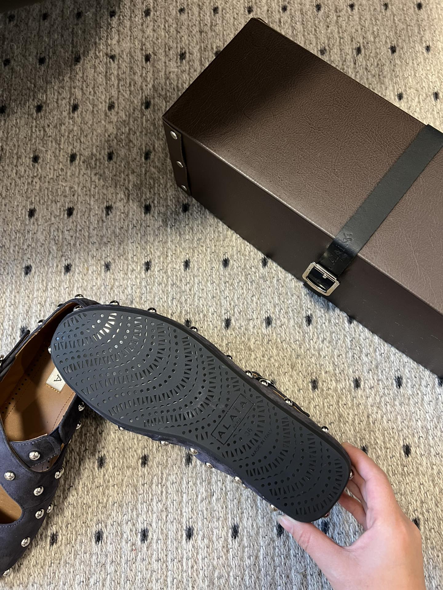 Alaia 25 Criss Cross With Stud Ballet Flats Azure Blue Suede Sheepskin 303691
