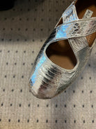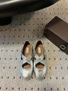 Alaia 25 Criss Cross With Stud Ballet Flats Silver Sheepskin 303696
