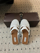 Alaia 25 Infradito Fishnet Flat Mules White Lampskin 303706