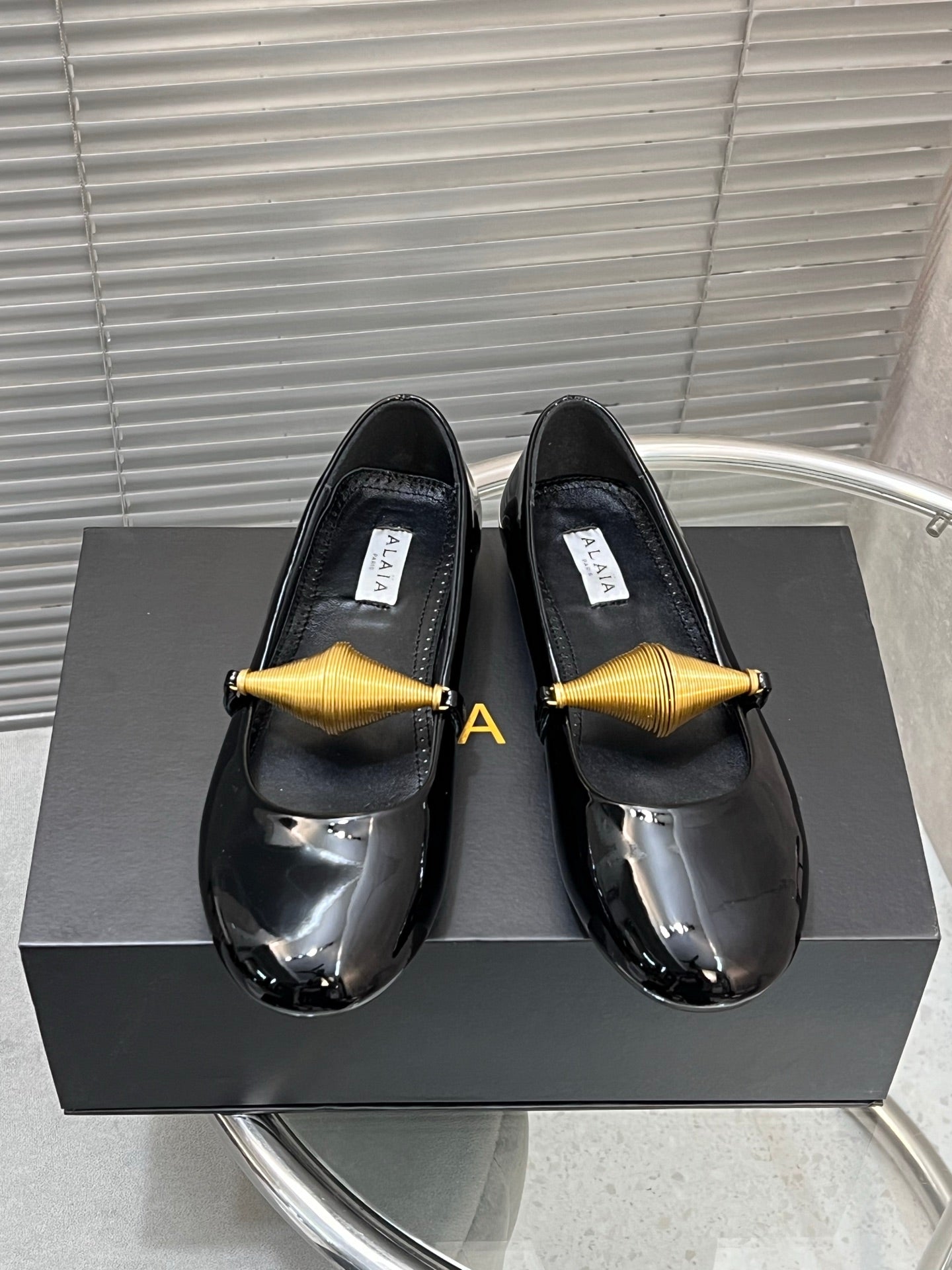 Alaia 25 Jewel Patent Leather Ballet Flats Black Lambskin 300012