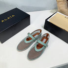 Alaia 25 Laminated Fishnet Ballet Flats Lagoon Green Lambskin 677172