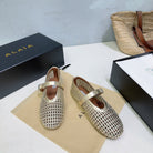 Alaia 25 Marry Janes Ballet Flats Gold Wool Sheepskin 300456