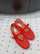 alaia ballet flat fishnet red lambskin