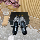 alaia ballet flat stud in fishnet black lambskin