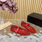 alaia ballet flat stud in fishnet red lambskin