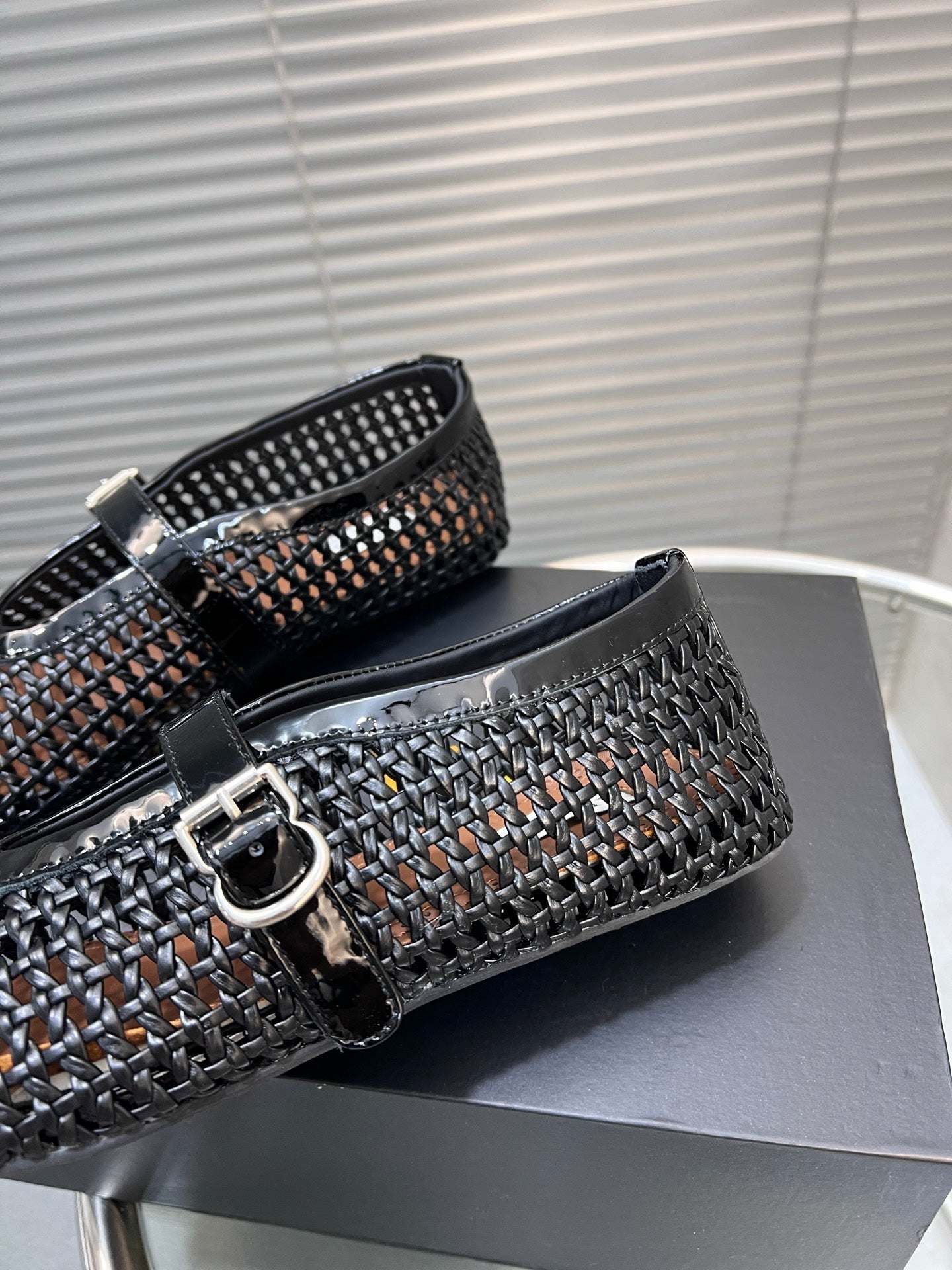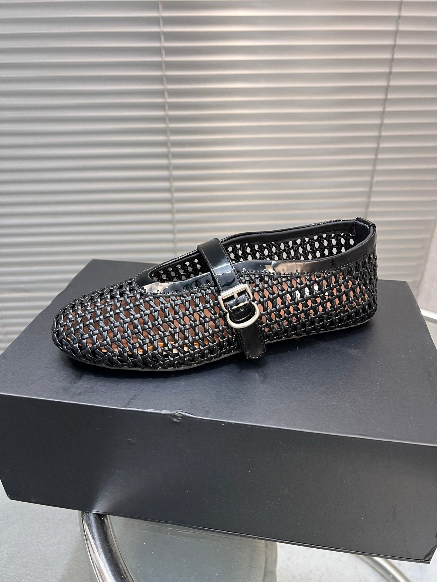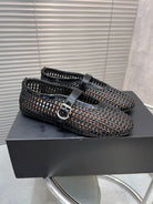 Alaia Braided Hollow Ballet Flats Black Cowhide 300041