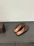 ALAIA FLAT MULES IN BLACK MESH FISHNET