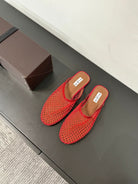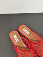 ALAIA FLAT MULES IN CHERRY RED MESH FISHNET