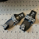 ALAIA FOLDED FLAT MULES WITH SPHERES ON BLACK CALFSKIN