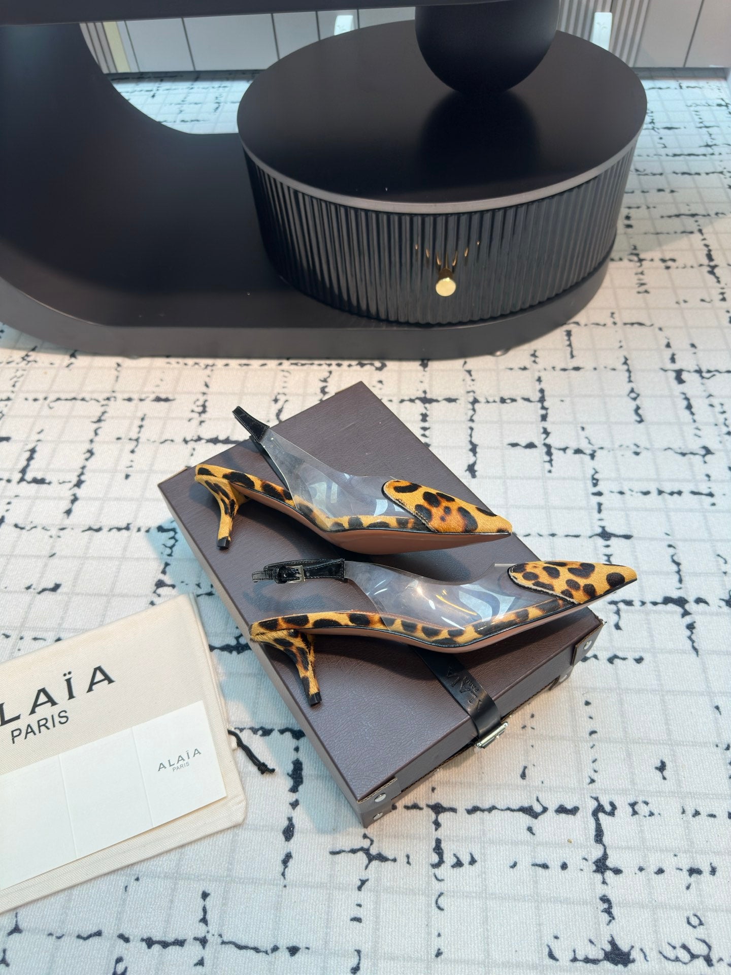 Alaia Heart 50mm Heels Slingbacks Leopard Sheepskin 810203