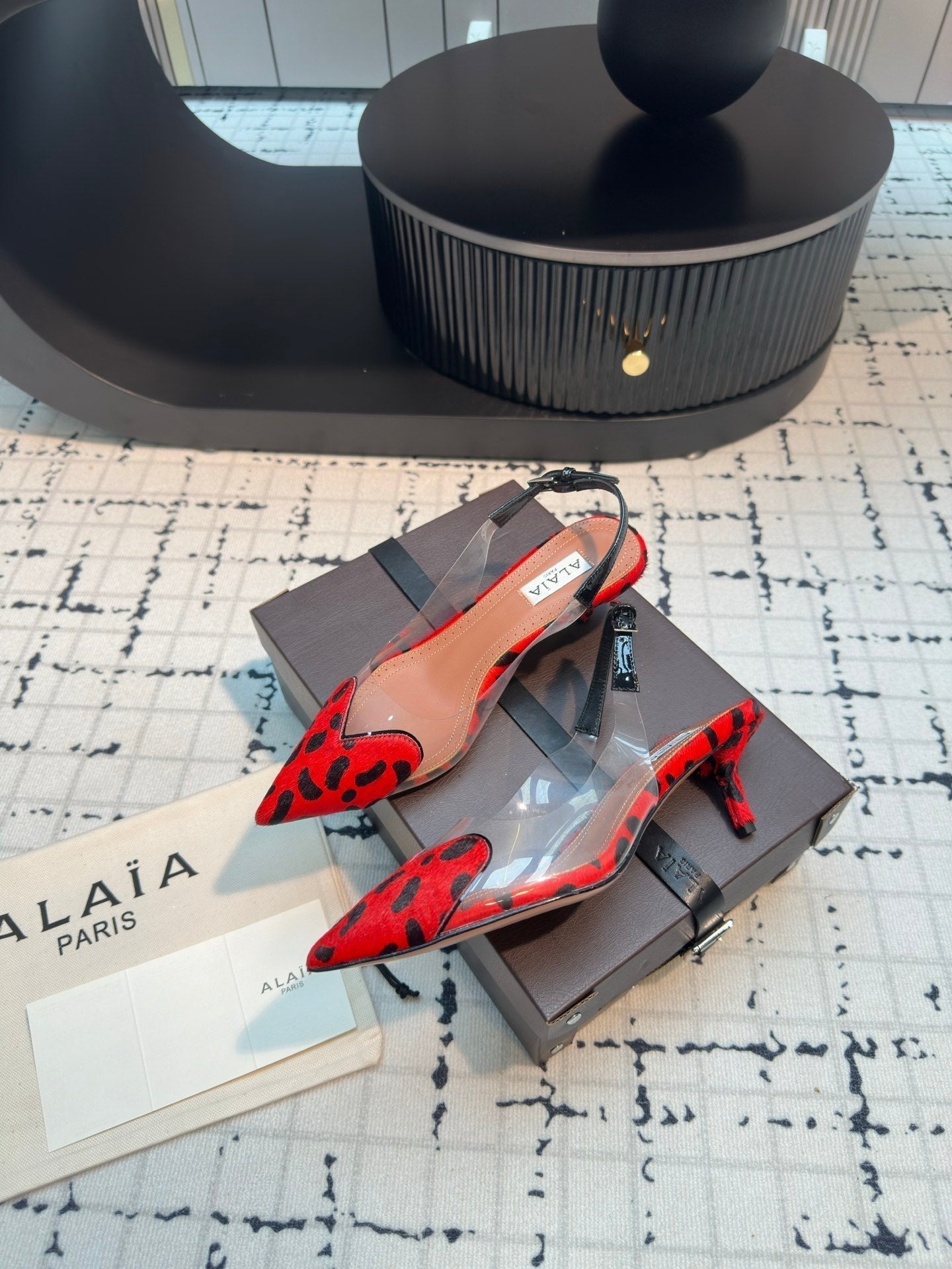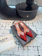 Alaia Heart 50mm Heels Slingbacks Red Leopard Sheepskin 810204