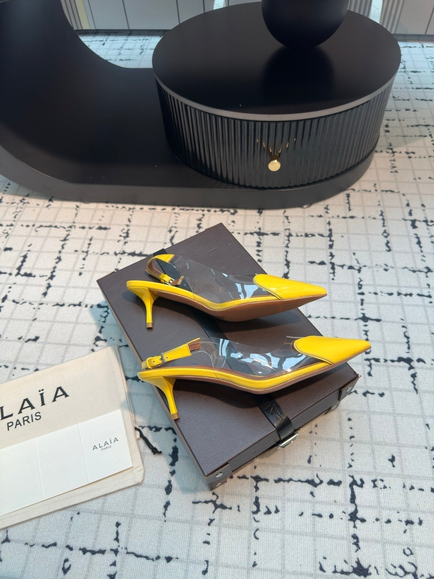 Alaia Heart 50mm Heels Slingbacks Yellow Sheepskin 810211