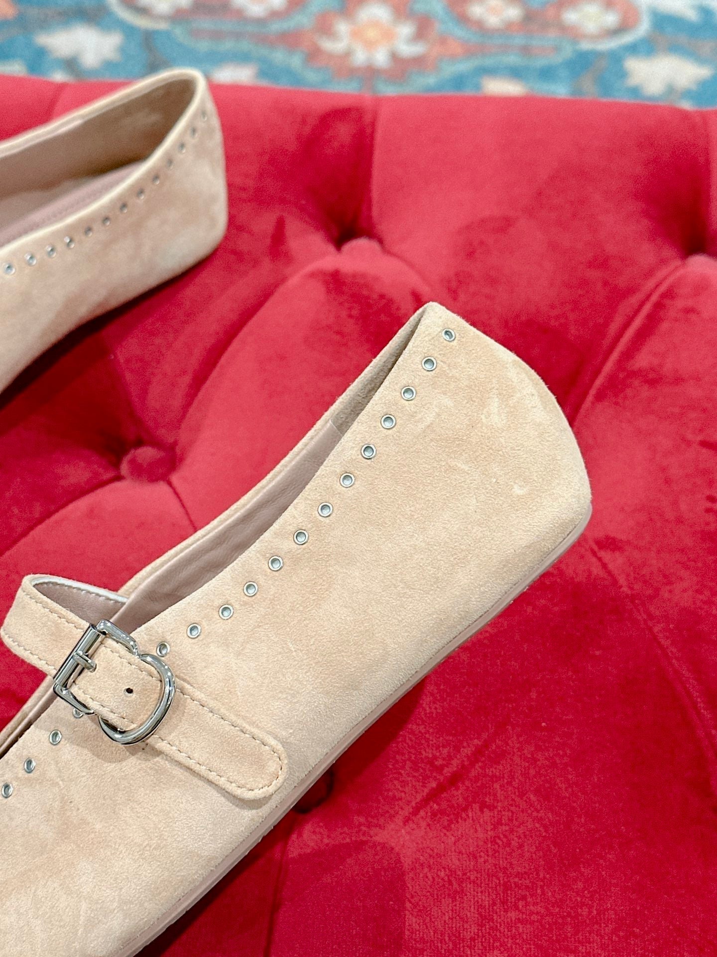 ALAIA MARY JANE IN BEIGE SUEDE WITH SILVER HARDWARE