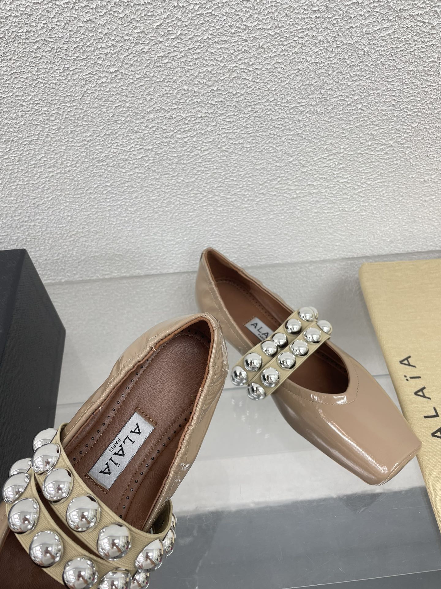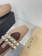 ALAIA MARY JANE PEARL IN GLOSSY BEIGE LAMBSKIN
