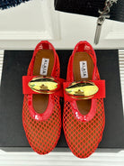 ALAIA MARY JANE SHOES IN CHERRY RED MESH WITH GOLD HARDWARE
