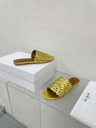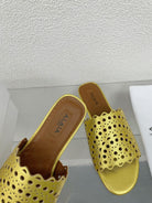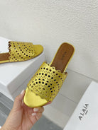 ALAIA VIENNE FLAT MULES IN GOLDEN LAMBSKIN