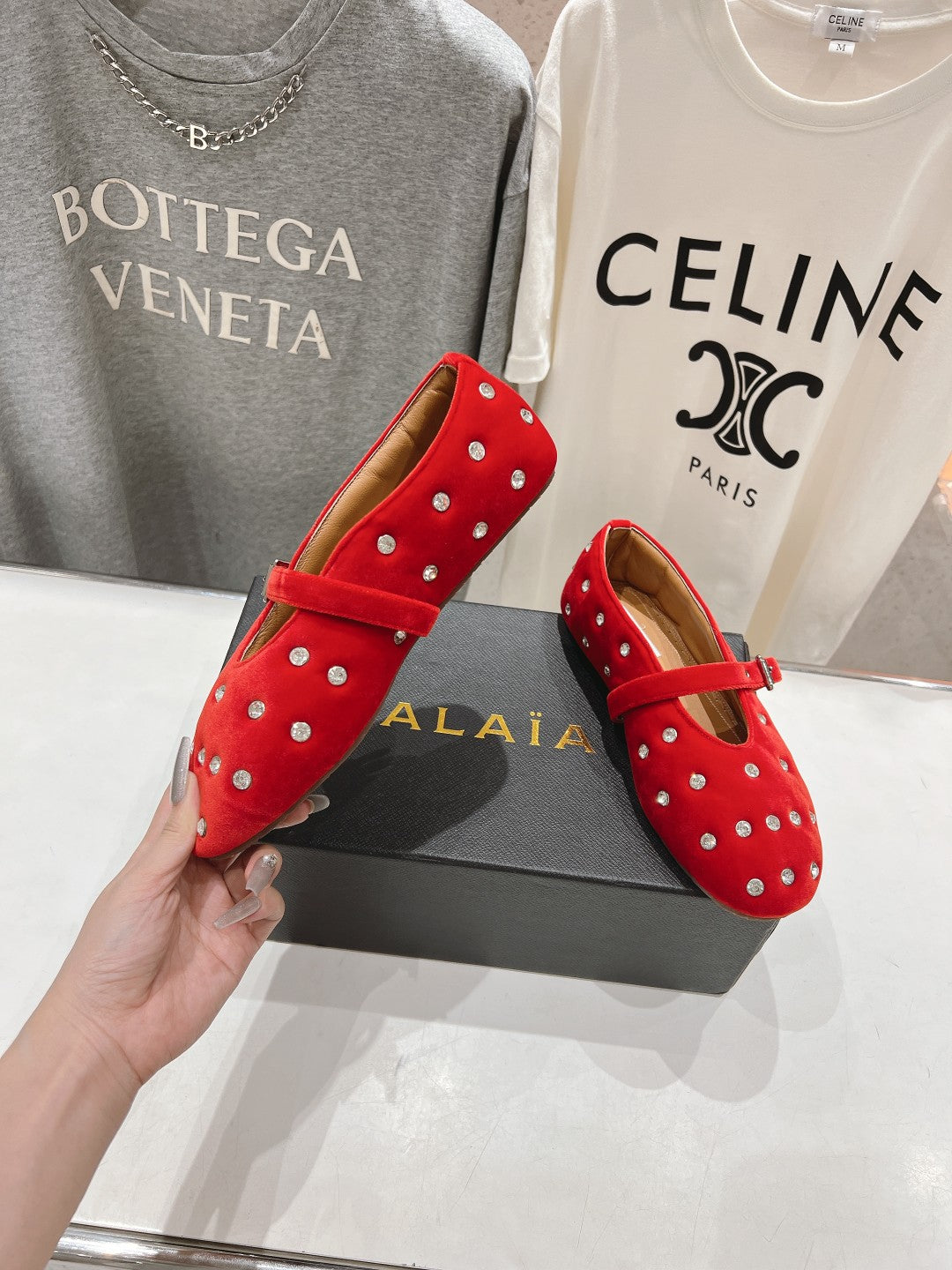 Alaila Ballet Flats In Red Velvet With Rhinestones 971994