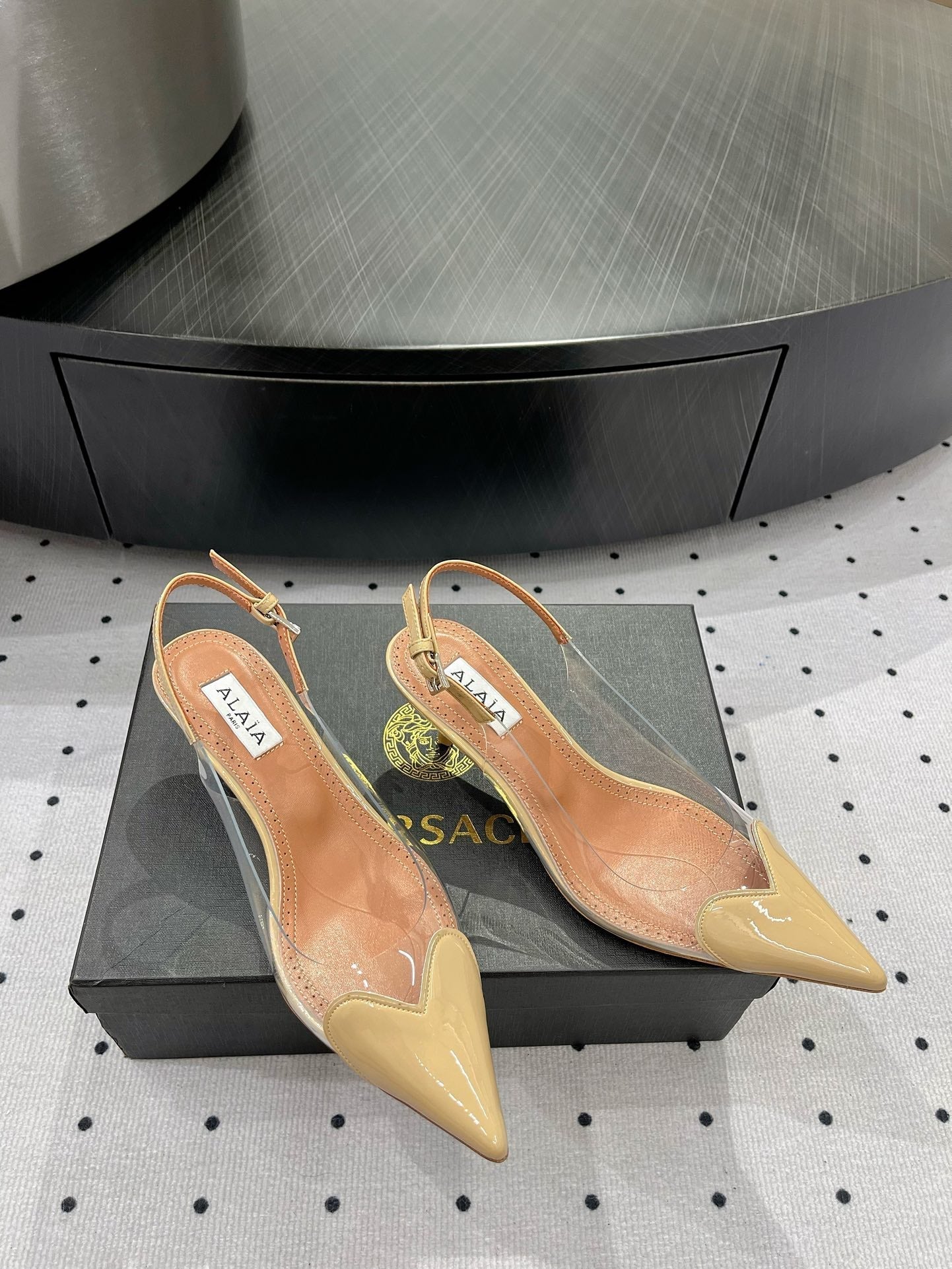 Alaila Le Cœur Slingbacks 60mm In Beige Glossy Lambskin 954829