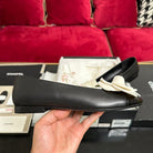 ballet flat white flower black calfskin