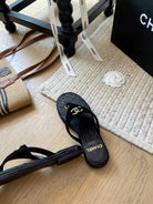 CC 25 Flip Flop Sandals Black Suede Calfskin Espadrilles