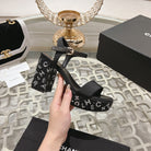 CC 25C 10CM Mid Heed Sandals Black Fabric 213324