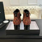 CC Ankle Boots Orange Red Beaded Tweed Fabric And Lambskin