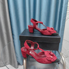 CC CAMELLIA SANDAL IN CHERRY RED SUEDE AND BLACK CALFSKIN WITH FLOWER