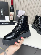 CC Combat Boots In Glossy Black Quilted Lambskin 944580
