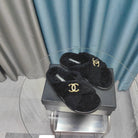 CC Crisscross Slippers Black Pattern Fleece Wool