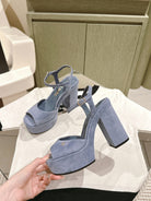 CC HIGH SANDAL SAPHIRE BLUE SUEDE CALFSKIN