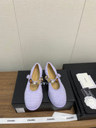 CC MARY JANES VIOLET WOOL TWEED AND FABRIC