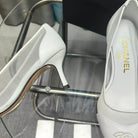 CC Pumps 50 White Mesh Leather Pointed Toe