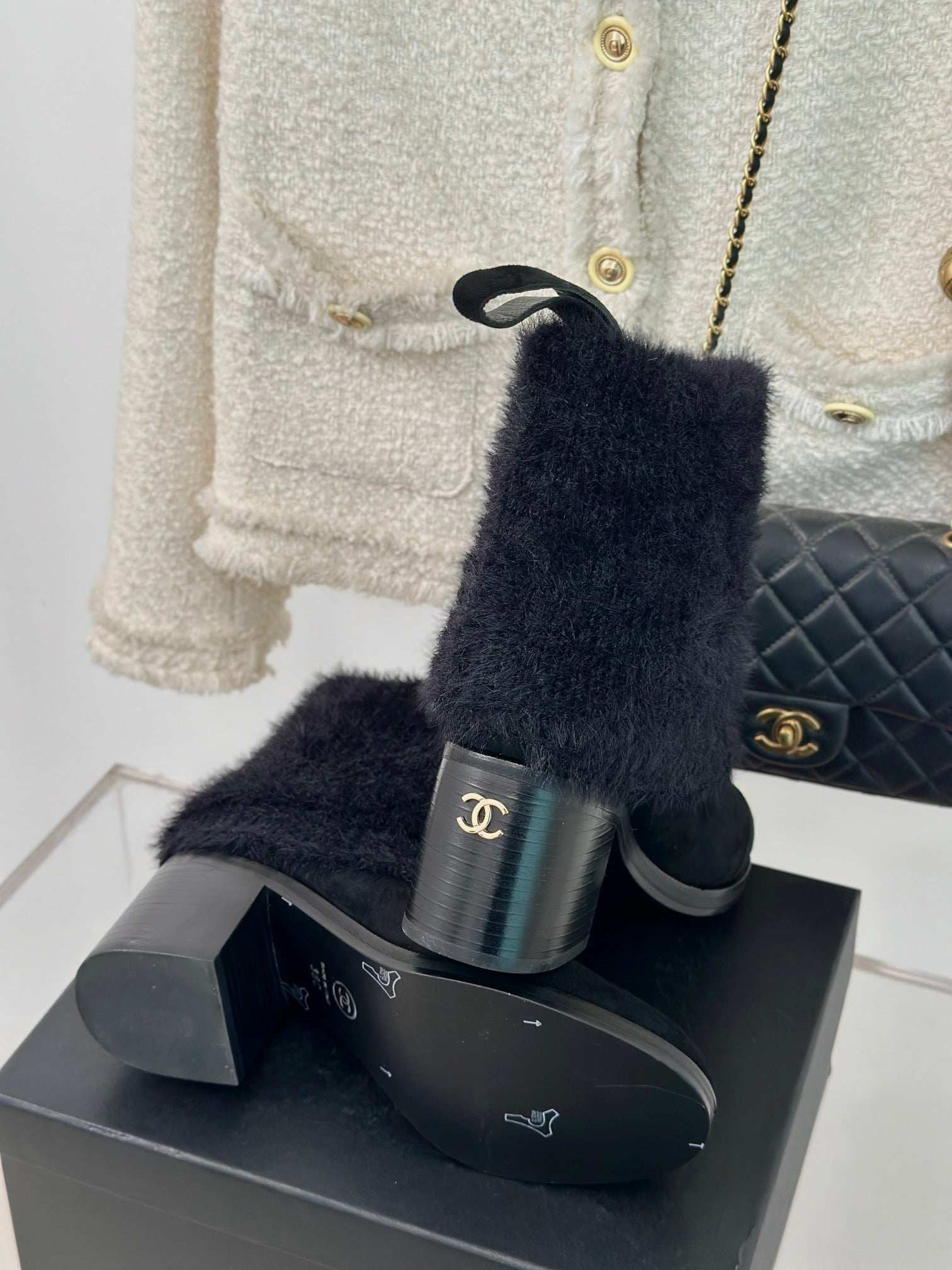 CC Short Boots 60mm Black Suede And Wool Yarn