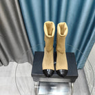 CC Short Boots 80mm Beige Wool Fabric And Lambskin