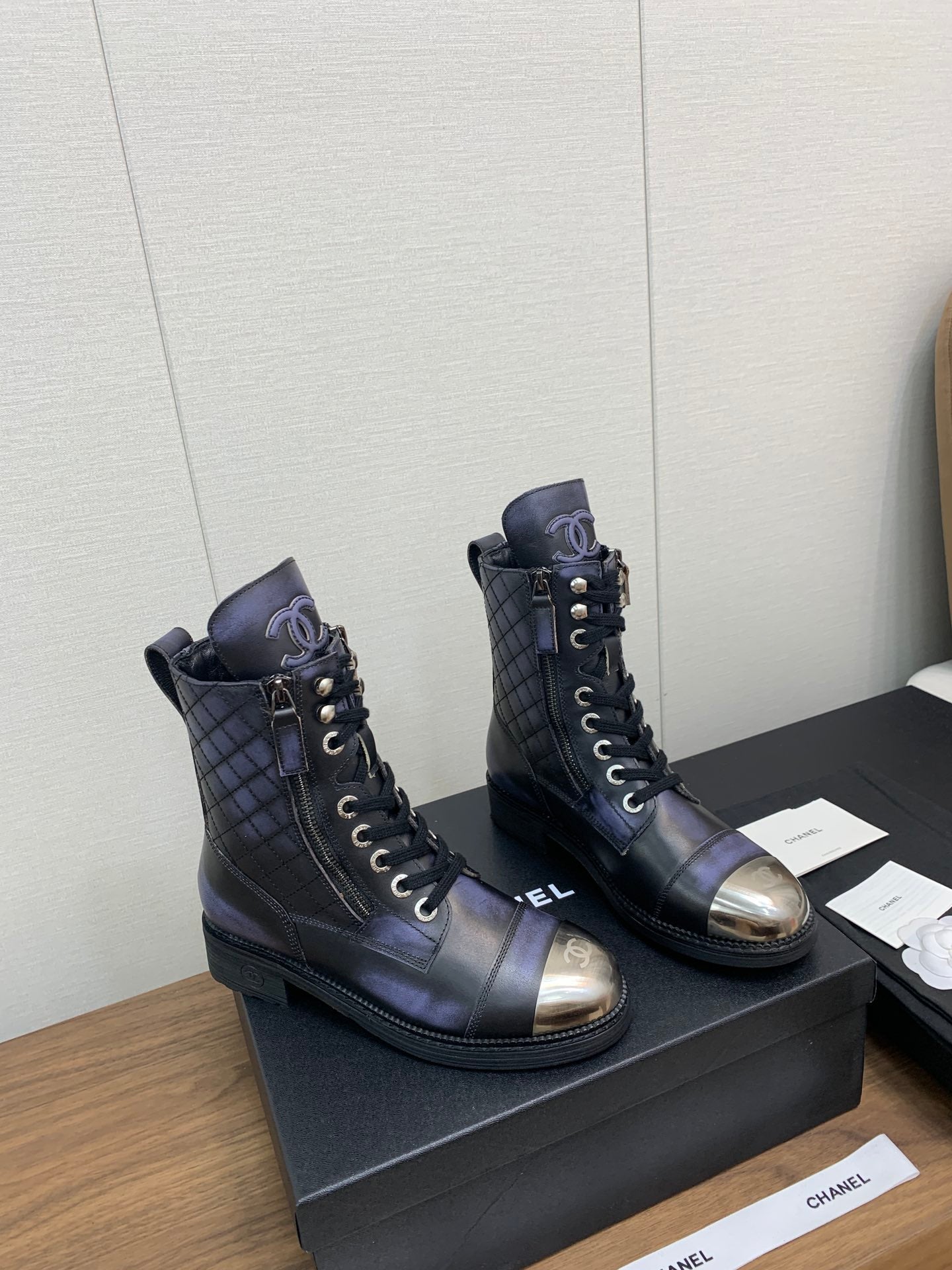 CC Short Boots Purple Black Yellow Cowhide