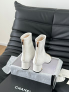 CC Ankle Boot White Calfskin Black Patent Calfskin
