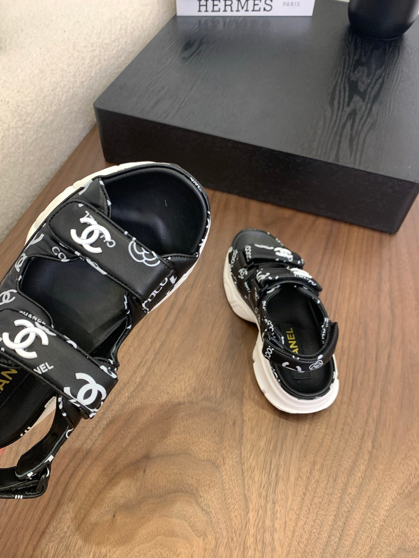 CC Toe Sandals Black Mix Camellia Pattern Leather 299539