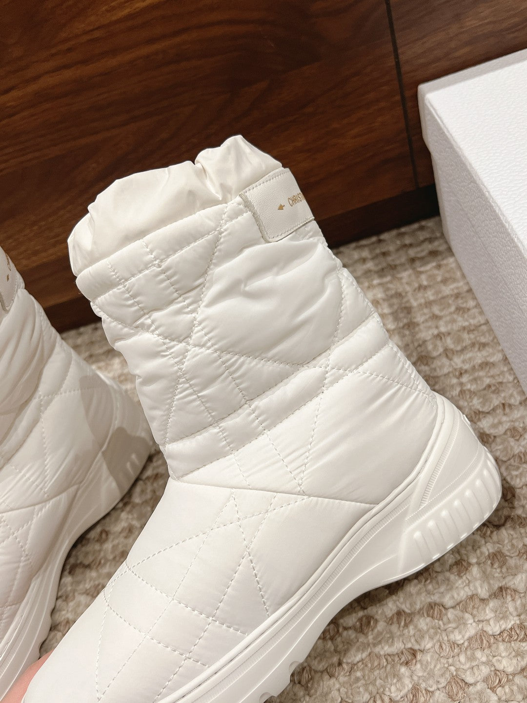 CD Ankle Boots White Quilted Windbreaker Fabric And Fleece