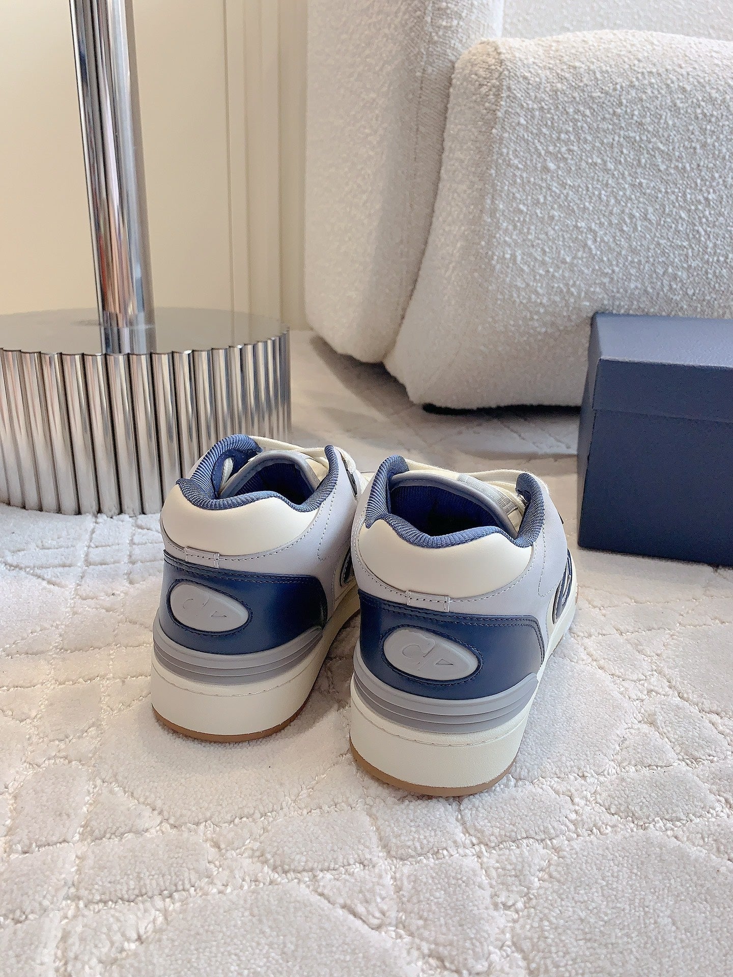 CD B57 Mid-Top Sneaker White Grey Mix Dark Blue Calfskin And Oblique Jacquard