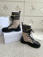CD D-Major Ankle Boot In Dark Beige Mix Black Canvas With Fleece Lining 105072