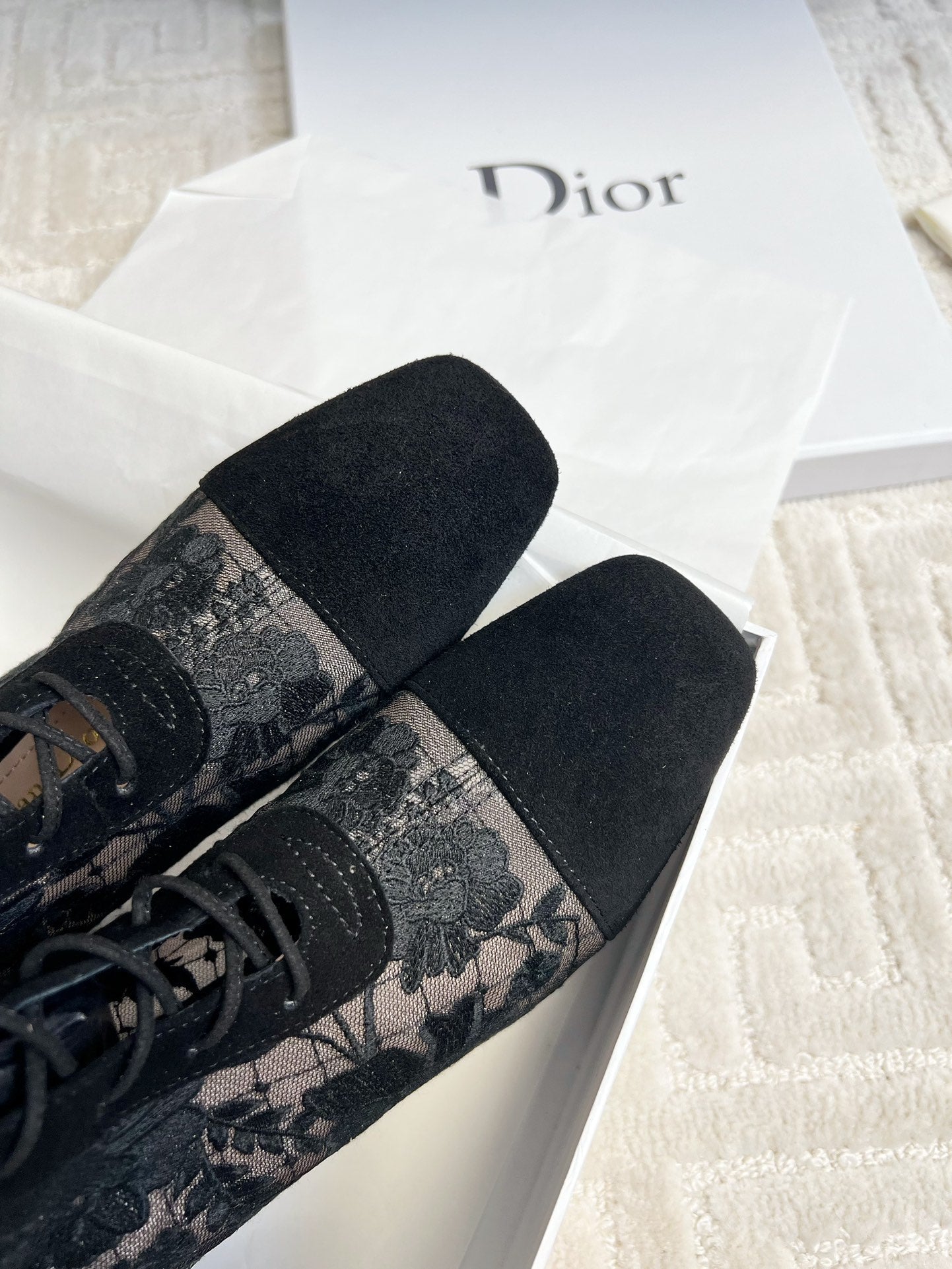 CD Naughtily-D Heeled High Boots Black Transparent Mesh Roses Embroidery And Suede
