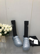 CHUNKY PLATFORM SHEARLING SLIPPER SAPHIRE BLUE LAMBSKIN