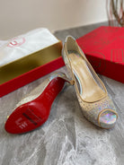 CL Very Strass Peep Toe Pumps 120mm Mesh and Leather Silver