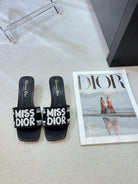 dway heeled slide 35 black embroidered cotton