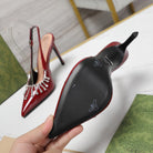GG CRYSTAL HIGH HEEL SANDAL SCARLET LAMBSKIN
