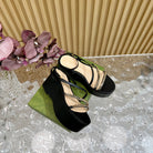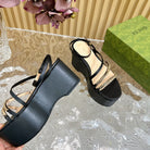 GG PLATFORM SANDAL BLACK CALFSKIN WITH CHAINS