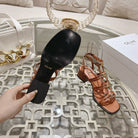 HIGH 45MM BLOCK HEEL SANDAL IN RUSSET BROWN LAMBSKIN