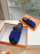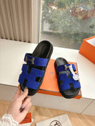 HM 25 Chypre Sandal Blue Suede Calfskin Silver H