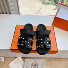 HM Chypre Sandal Black Calfskin mix Studs 202820