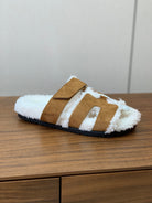 HM Chypre Sandal In Brown Mix White Fleece And Suede 984200